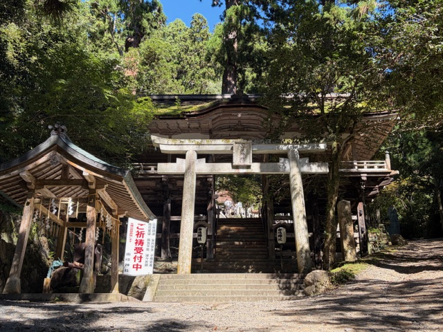 参道の途中には、毎年10月22日に行われる「鞍馬の火祭」で知られる「由岐神社」が佇んでいる。